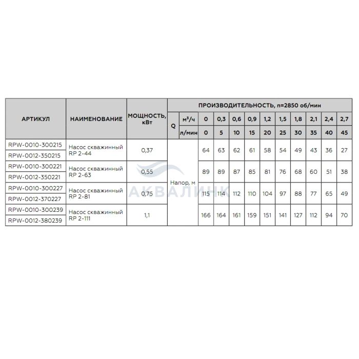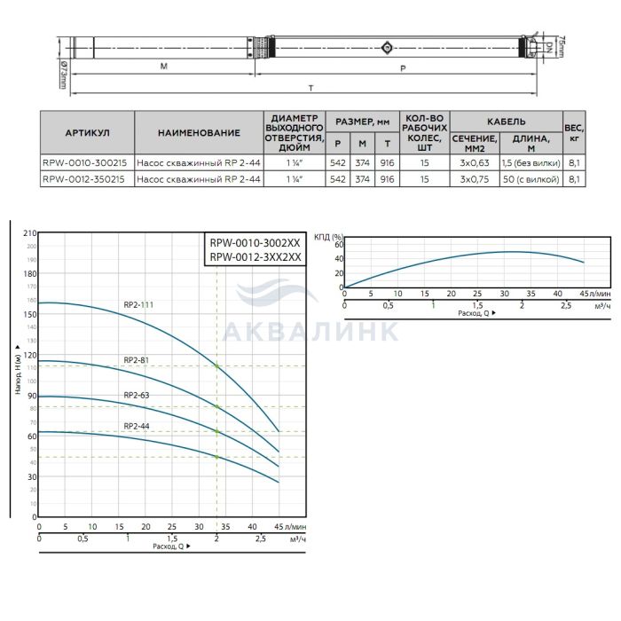 Насос ROMMER RP 2-44 скважинный 1-1/4" кабель 1,5м