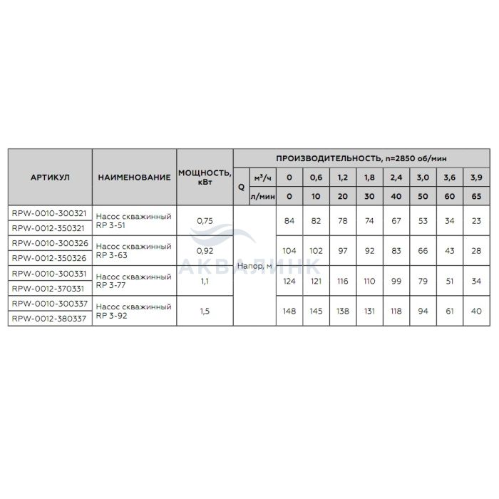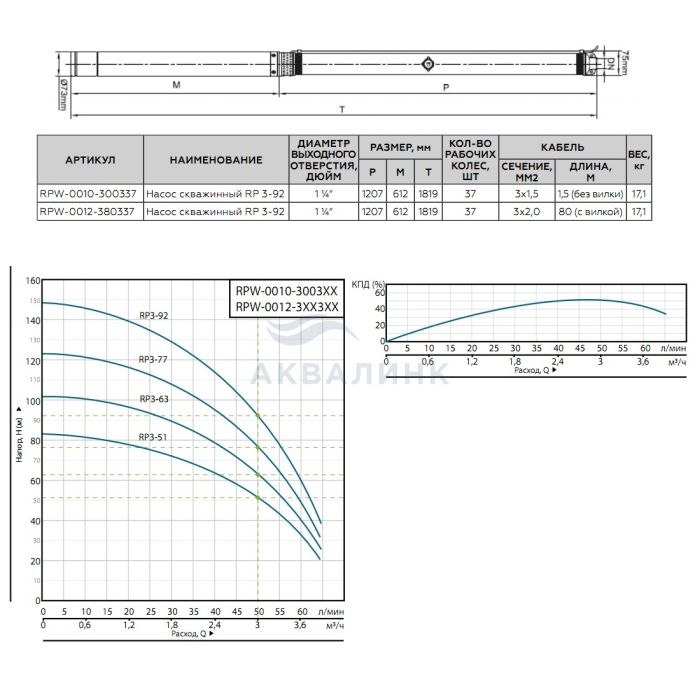 Насос ROMMER RP 3-92 скважинный 1-1/4" кабель 80м