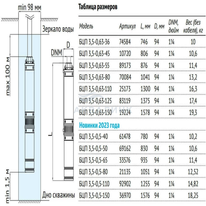 БЦП – это бытовой центробежный погружной насос, предназначенный для подачи чистой холодной воды из скважин с внутренним диаметром 98 мм, глубоких колодцев, емкостей и резервуаров, открытых водоемов. Насос чаще всего применяется для организации системы водоснабжения частного дома и полива участков. Для автономной системы водоснабжения пользователем дополнительно приобретается автоматика и необходимые комплектующиеПерекачиваемая вода должна быть чистой, иметь общую минерализацию (сухой остаток) не более 1500 г/м³, водородный показатель (рН) от 6,5 до 9,5, температуру до 308 К (35 °С), массовую долю твердых механических примесей не более 0,01%, содержание хлоридов не более 350 г/м³, сероводорода не более 1,5 г/м³, не содержать твердых и волокнистых включений.