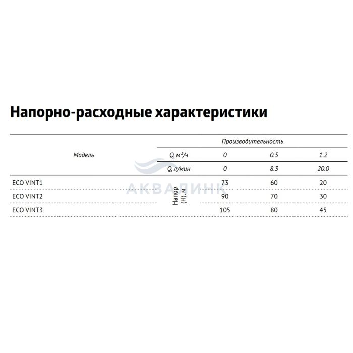 Погружные скважинные насосы UNIPUMP серии ЕСО VINT — предназначены для бытового использования и применяются для подачи чистой пресной воды из колодцев, скважин диаметром не менее 85 мм, и различных резервуаров. Область применения — для автономного водоснабжения индивидуальных домов, полива огородов и садовых участков, накачивания малых и средних резервуаров.