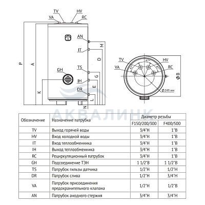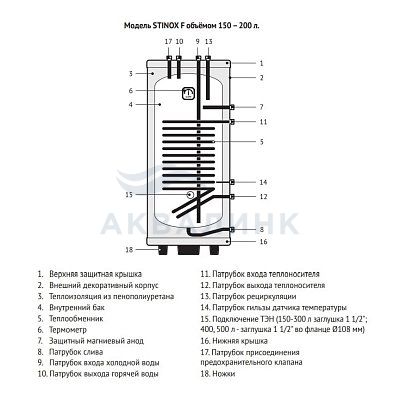 Бойлер Uni-Fitt STINOX F 200 литров, напольный, нержавеющая сталь, с возможностью установки ТЭНа