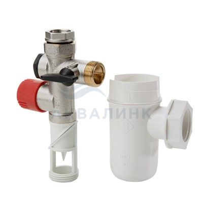 (VT.461.NC) Группа безопасности бойлера VT.461 позволяет пользователю обезопасить себя и свой дом от серьезных аварий, случающихся из-за неисправностей бытовых водонагревателей. Группа состоит из латунного никелированного корпуса, в котором расположены шаровой кран с затвором из латуни, пружинный обратный клапан и предохранительный клапан большой производительности по воде и водяному пару. Обратный клапан не позволяет нагреваемой и расширяющейся воде уходить в холодный водопровод, а предохранительный защищает водонагреватель от превышения давления. Поворотный сливной пластиковый патрубок с устройством разрыв струи может быть соединен с канализацией с помощью канализационной трубы или шланга с накидной гайкой 1". Предохранительный клапан группы безопасности оснащен устройством принудительного открытия, что позволяет открывать клапан для слива воды из бойлера, проверки срабатывания и п