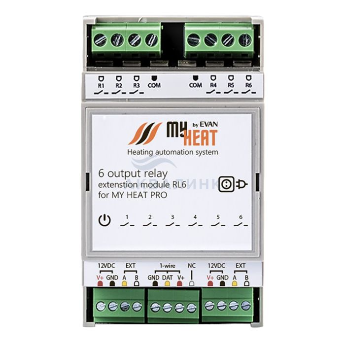 Модуль MY HEAT RL6S подключается к контроллеру по проводной шине и предназначен для бесшумной коммутации дополнительных шести выходов электрической нагрузки посредством симистора. Для связи с контроллером оснащен интерфейсом RS-485 (посредством внутреннего протокола MY HEAT). Модуль оснащен интерфейсом 1-wire для подключения шлейфа цифровых датчиков температуры. Ключевой особенностью модуля является встроенная функция ПИД-регулирования до 3-х контуров одновременно. Модули расширения предназначены для использования в автоматизированных системах отопления и горячего водоснабжения под управлением теплового контроллера MY HEAT. Модули расширяют возможности контроллера MY HEAT, предоставляя дополнительные функции, интерфейсы и порты ввода/вывода.