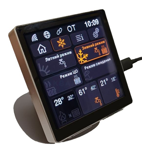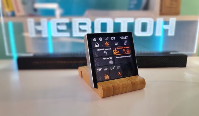 Новая сенсорная панель NEVOTON RWI-4.0.1-WF - инновационное решение для комфортного управления домом. Идеально дополнит интерьер гостиной, спальни или кухни. Панель разработана для взаимодействия с контроллером NEVOTON BCG-1.1.3-WF (приобретается отдельно). Соединение с контроллером осуществляется через встроенную технологию Wi-Fi, обеспечивающую стабильную и быструю связь. Удобный интерфейс позволяет легко управлять отопительным оборудованием прямо с экрана вашей панели, которая повторяет функциональность приложения «Невотон Автоматика». Основные элементы меню отражают ключевые функции системы отопления: нагрев воды (ГВС), выбор климатической кривой (ПЗА), центральное отопление (ЦО), информацию о возможных ошибках в работе котла, другие функции.