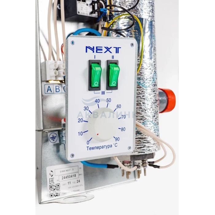 Электрокотел ЭВАН NEXT предназначен для отопления жилых и производственных помещений площадью от 30 до 280 кв.м. Может использоваться в качестве основного, так и резервного источника тепла. Компактный размер и простой монтаж, не требуется отдельное помещение. ЭВАН NEXT может работать как в открытой, так и закрытой отопительной системе, при давлении не более 0,3 МПа. ТЭНы котла ЭВАН NEXT сделаны из нержавеющей стали, что повышает срок их службы. Кроме того, в котлах ЭВАН NEXT реализована блочная конструкция ТЭН на резьбовом соединении, что позволяет существенно упростить его замену. Для работы в системах с принудительной циркуляцией электроотопительный котел ЭВАН NEXT имеет колодку для подключения циркуляционного насоса В моделях, выпущенных после ноября 2018 года, предусмотрена колодка для подключения внешнего термостата или модуля дистанционного управления MyHeat. С октября 2019 года расширена мощностная линейка. Ступени мощности: ЭВАН NEXT 3 3 кВт 2/1/3 ЭВАН NEXT 5 5 кВт 3,33/1,66/5 ЭВАН NEXT 7 7 кВт 4,67/2,33/7 ЭВАН NEXT 9 9 кВт 6/3/9 ЭВАН NEXT 12 12 кВт 6/12 ЭВАН NEXT 14 14 кВт 7/14 ЭВАН NEXT 18 18 кВт 9/18 ЭВАН NEXT 21 21 кВт 12/9/21 ЭВАН NEXT 24 24 кВт 12/24 ЭВАН NEXT 28 28 кВт 14/28