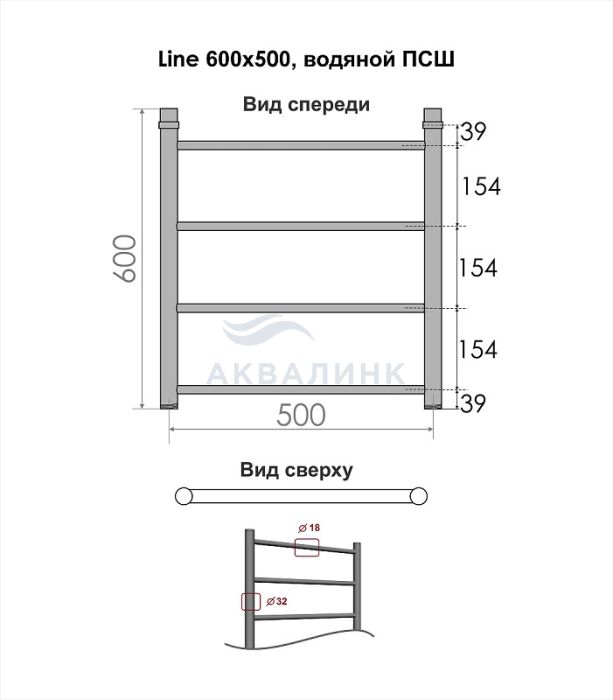 Образец Полотенцесушитель INDIGO Line б/п (н.р.1") 60/50 (к-1), белый матовый