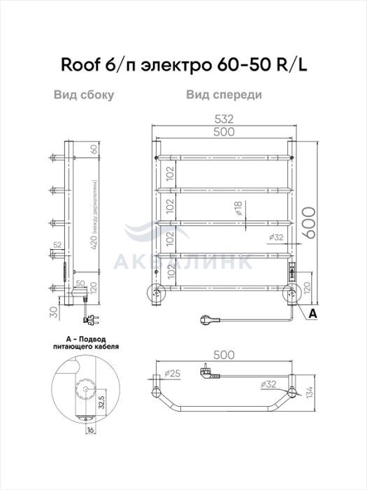 Образец Полотенцесушитель INDIGO Roof Lux б/п (electro) 60/50 (таймер, скр.монтаж, унив.подкл.R/L, черный муар