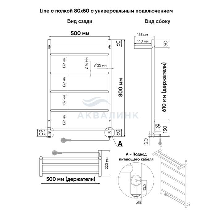Полотенцесушитель электрический INDIGO лесенка Line с полкой 80/50 (скр.монтаж, унив.подкл.R/L, Полиров.)