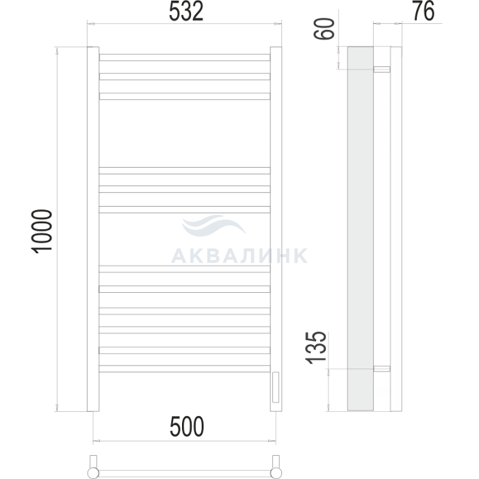 Полотенцесушитель электрический Terminus лесенка Аврора П12 500х1000 (sensor quick touch)