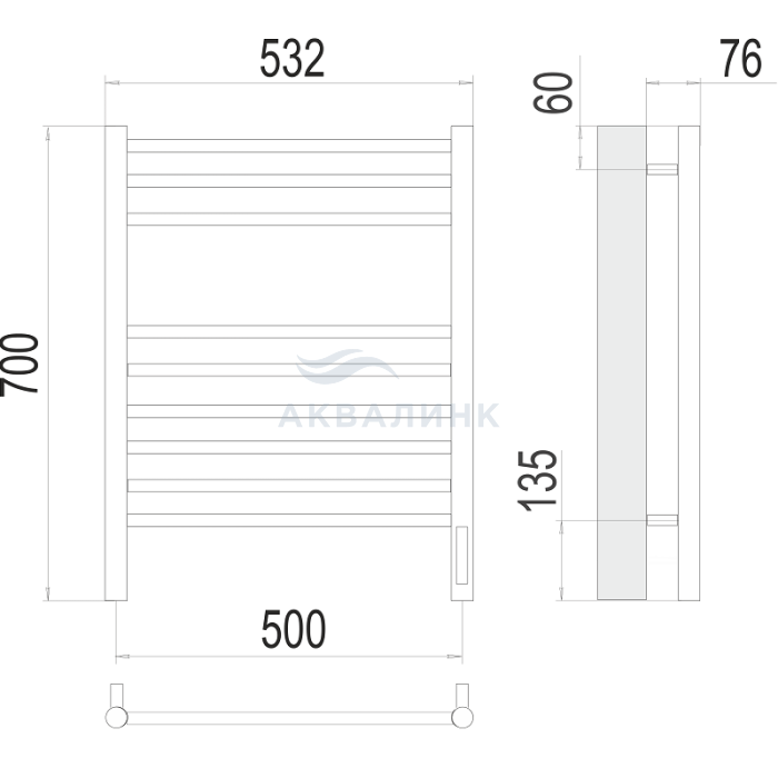 Полотенцесушитель электрический Terminus лесенка Аврора П9 500х700 (sensor quick touch)