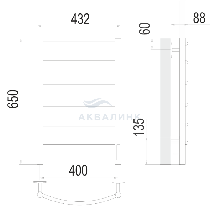 Полотенцесушитель, телескопическое крепление, модуль скрытого подключения, съемный кабель