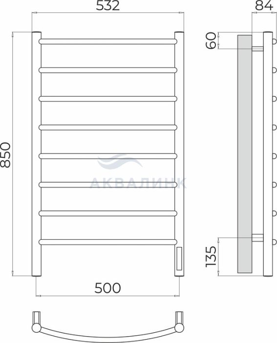 Полотенцесушитель электрический Terminus лесенка Классик П8 500х850 (quick touch)
