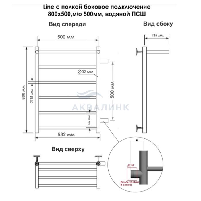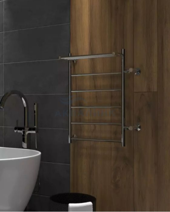 Полотенцесушитель водяной INDIGO лесенка Line с полкой 80/50, боковое подкл. (справа) м/о 50 (н.р.1") (к-2, Полиров.)