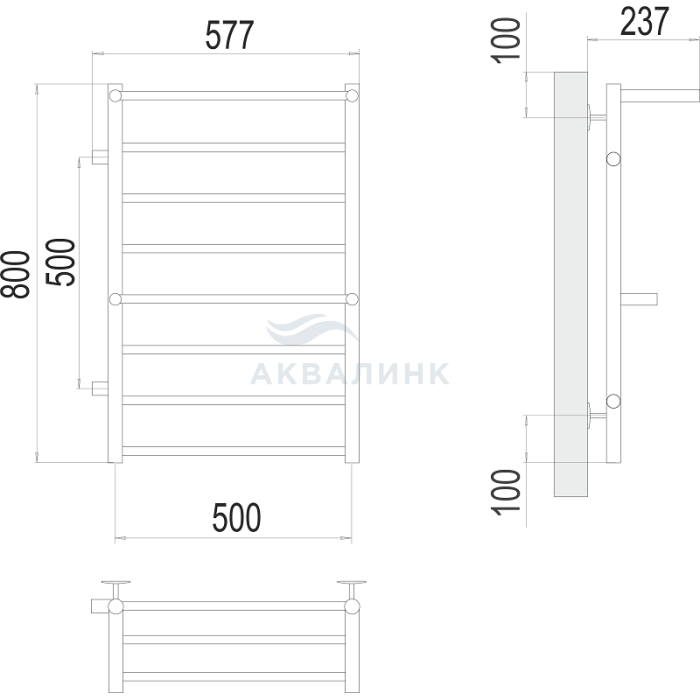 Полотенцесушитель водяной Terminus лесенка Аврора c 2 полками П8 500х800, боковое подкл. м/о 500 слева