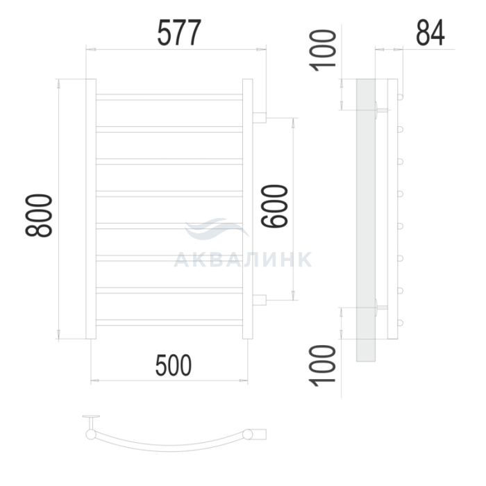 Полотенцесушитель водяной Terminus лесенка Классик П8 500х800, боковое подкл. м/о 600