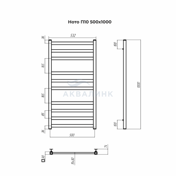Полотенцесушитель водяной INDIGO лесенка Nova 60/50, приваренный угол с гайкой (в.р.3/4") (к-3, Magnetic Grey)