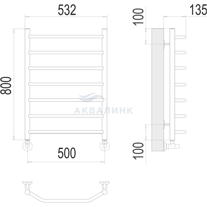 Полотенцесушитель, заглушка, кран Маевского, телескопический крепеж 4 шт.