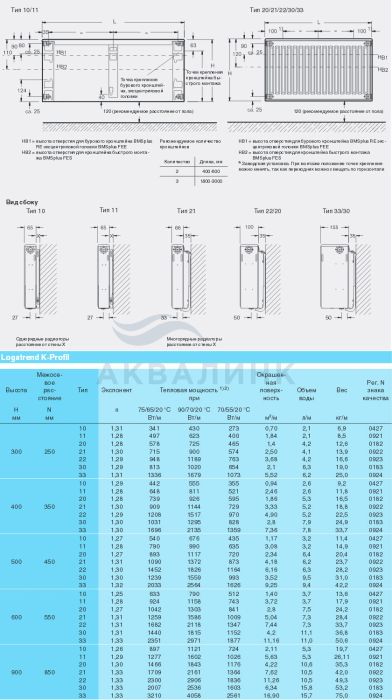 Стальные панельные радиаторы Buderus Logatrend K-Profil Тип 21– это многорядные радиаторы с боковым подключением (четыре патрубка с внутренней резьбой G½) и съемной верхней решеткой, представленные высотами от 300 до 900 мм и длинами от 400 до 2000 мм включительно.