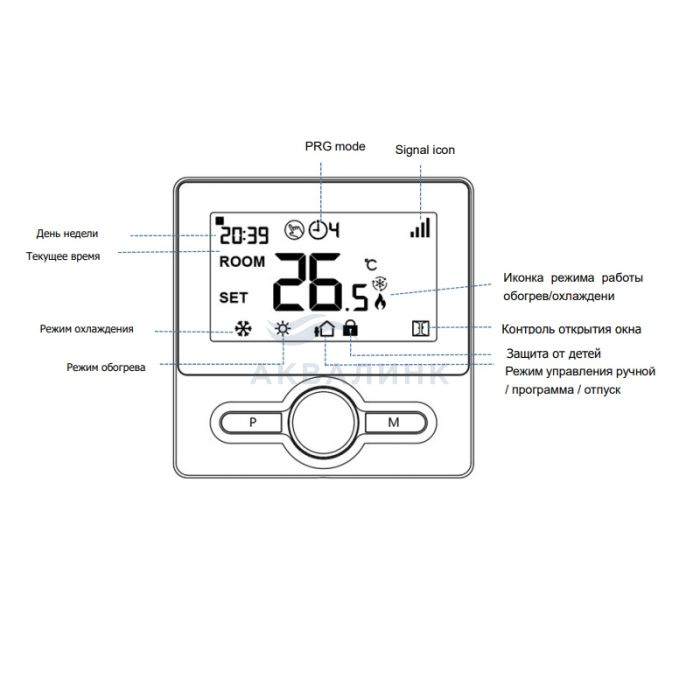 Беспроводной комнатный термостат Kromwell KW.HT-25RF был разработан специально для работы в системе управления водяным теплым Kromwell WF и используется совместно с коммутационным центром KW.WF-WB8RF. для включения и выключения электрических и традиционных систем отопления с использованием заданной температуры и времени. Технические данные: Питание термостата 2 батарейка ААА Тип внутренней памяти Энергонезависимая EEPROM Частота связи с коммутационным центром 868 Мгц Выбор канала связи с коммутационным центром На термостате и коммутационном центре Программы настройки Недельный таймер, 4 программы в день Настройка температуры 5-35 0С, шаг 0,5 0С Погрешность +/- 0,5 0С Габаритные размеры 98 мм. Х 98 мм х 27 мм. Цвет экрана Черный Класс защиты IP 20 Сертификация CE/Rohs/RED