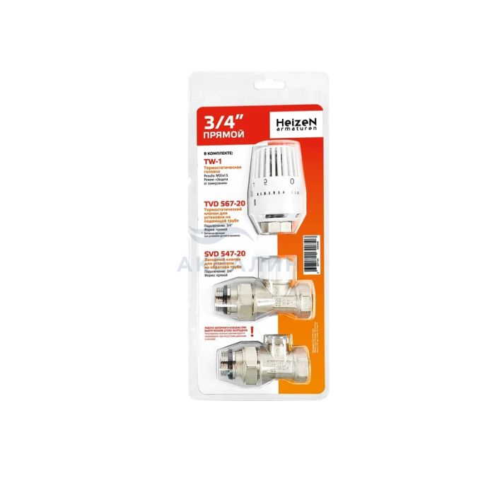 Комплект для подключения радиатора прямой Ду20 Heizen BL-DUB20