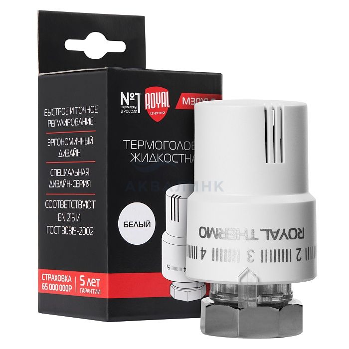 Термоголовка Royal Thermo жидкостная M30 x 1,5 белая, RTO 08.01