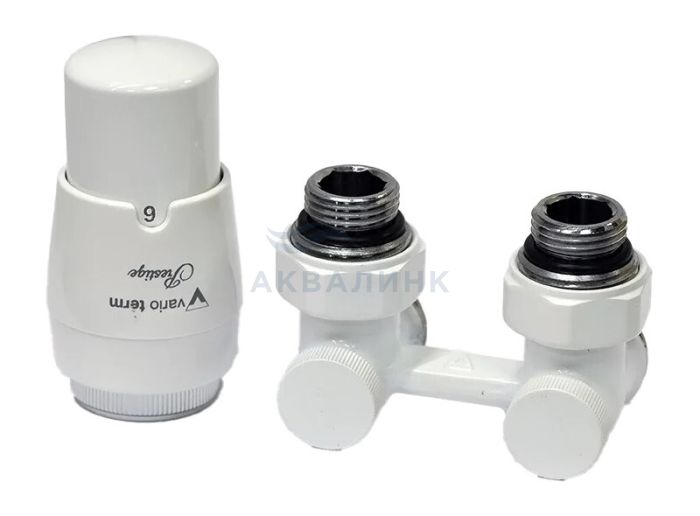 Комплект нижнего подключения VARIO Premium Eleganckie угловой 3/4"х3/4", с термоголовкой, белый