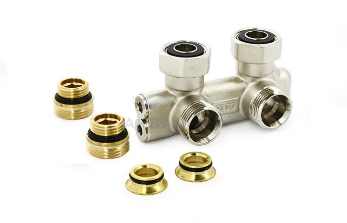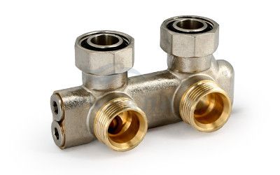 Узел нижнего подключения Uni-fitt угловой, перекрёстный 3/4х3/4"ЕК, со встроенными вентилями 197N3301