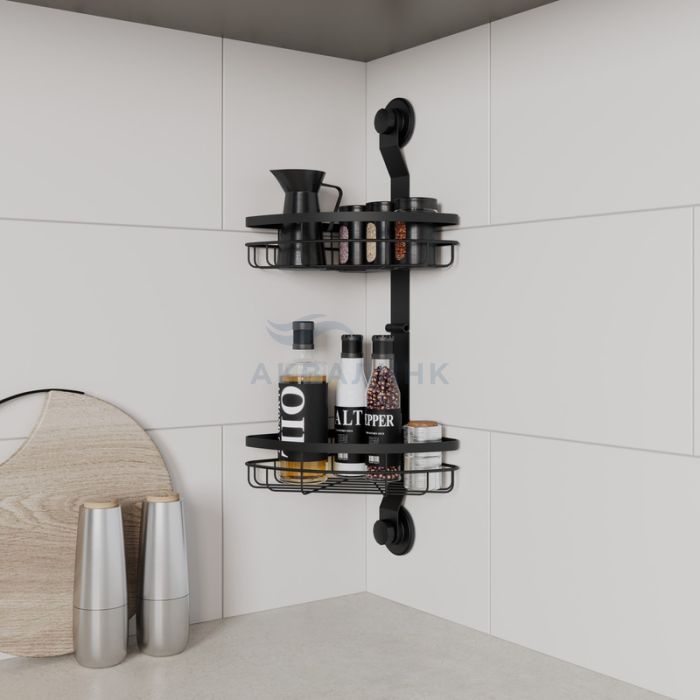 Двухъярусная угловая полка Milardo Easy проволока стальная черный матовый EASCWS2M44