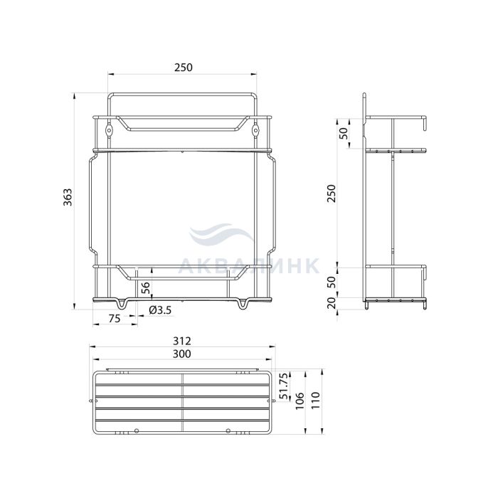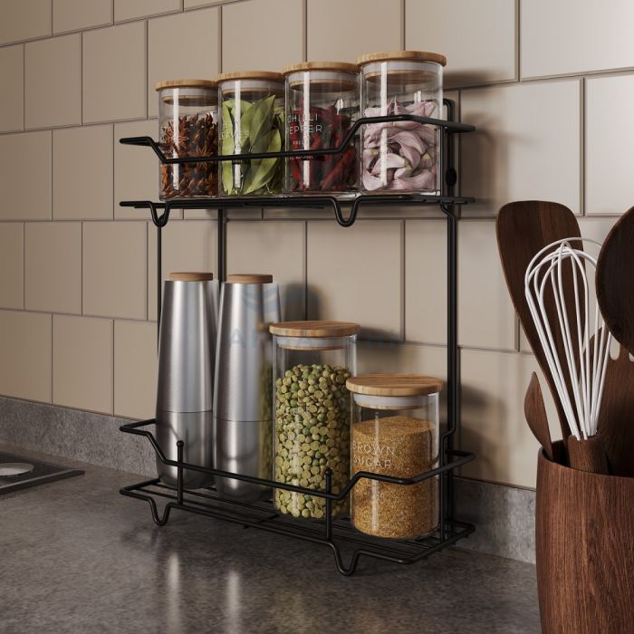 Полка двухъярусная прямая Milardo Grid проволока стальная чёрный матовый GRICS2BM44