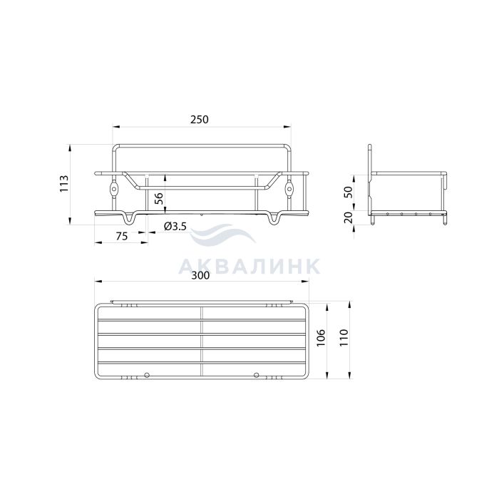 Полка одноярусная прямая Milardo Grid проволока стальная чёрный матовый GRICS1BM44