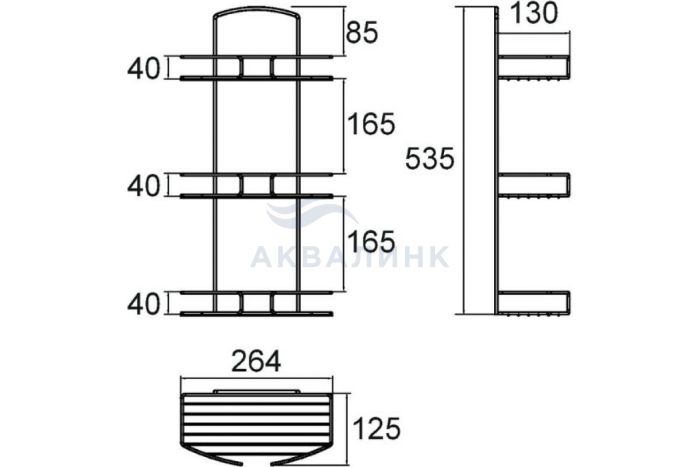 Полка прямая трехъярусная Milardo 013W030M44