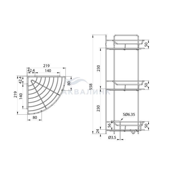 Полка трёхъярусная угловая Milardo Grid проволока стальная чёрный матовый GRICC3BM44