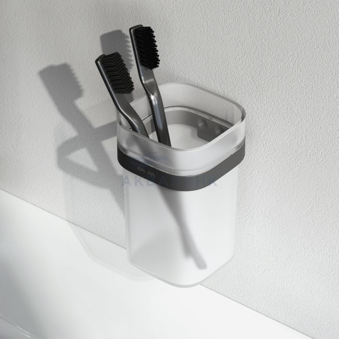 Стакан Am.Pm Func стеклянный с настенным держателем черный A8F34322