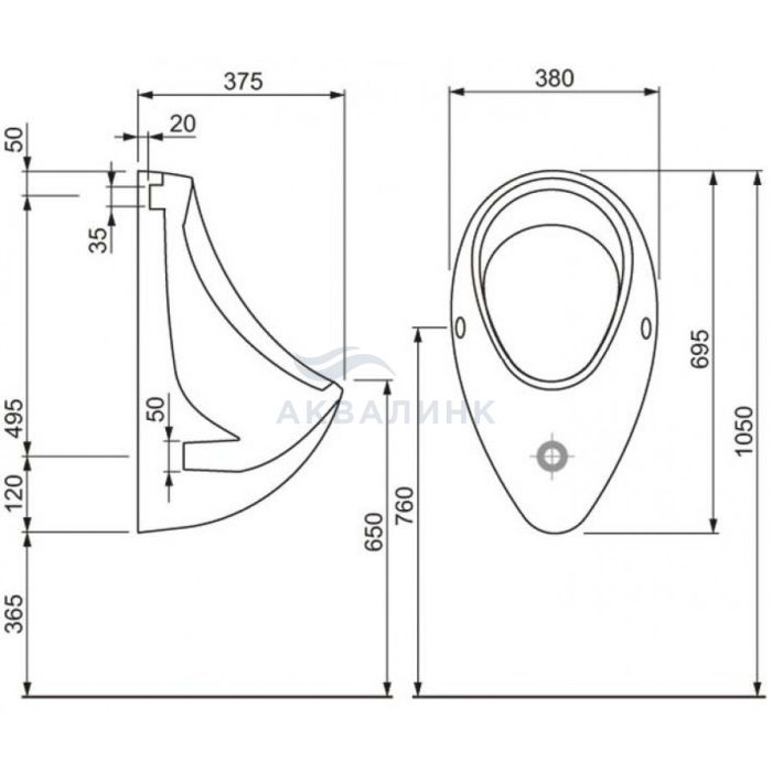 (P-PI-T100) Писсуар: Taurus T100, подвод воды сбоку, белый, Сорт1