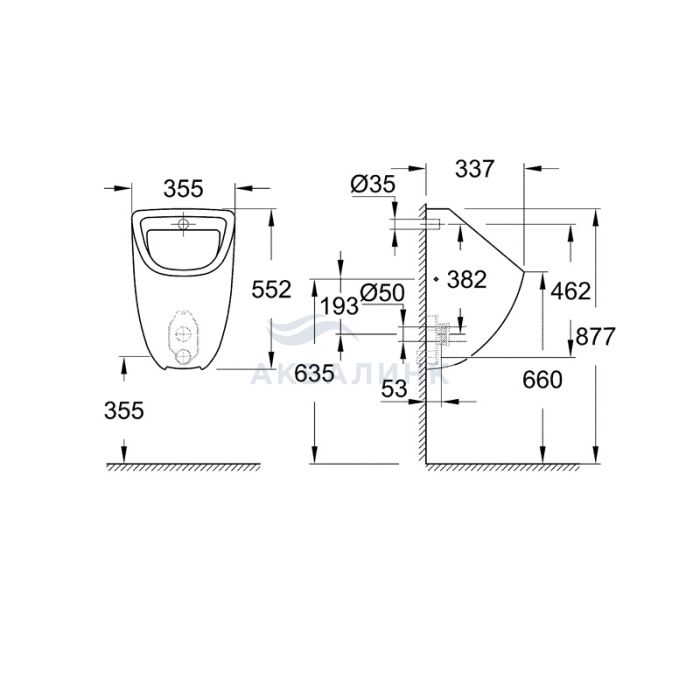 39438000 Bau Ceramic Писсуар , скрытый монтаж, альпин-белый (16 шт пал - 126365)