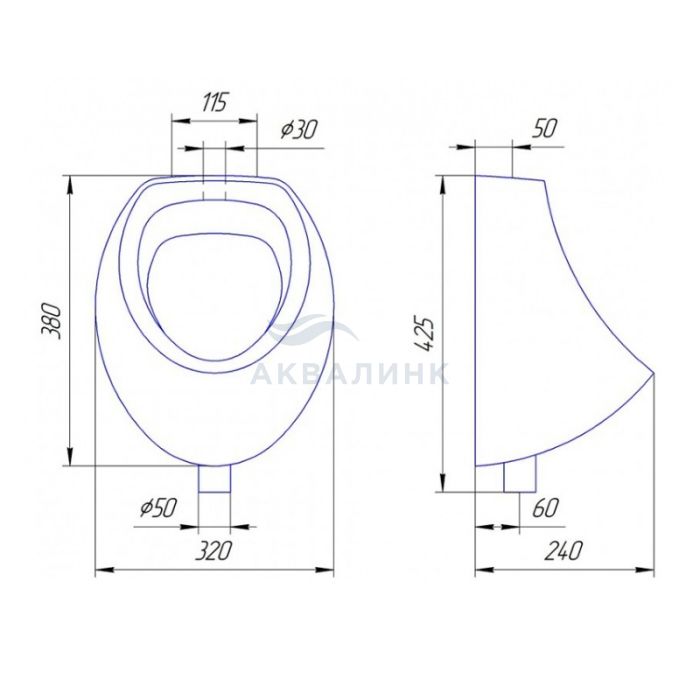 Писсуар Керамин Лаго с нажимным краном и горизонтальным сифоном