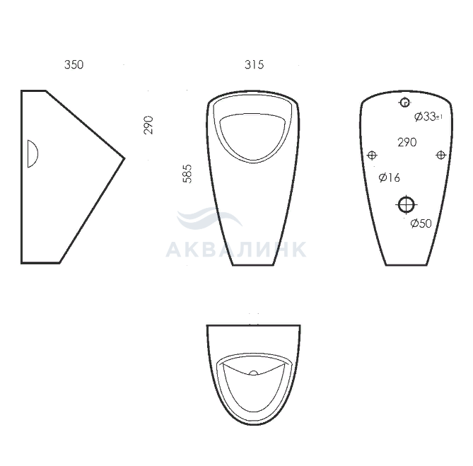 Писсуар Sanita Luxe Long sensor скрытый подвод воды