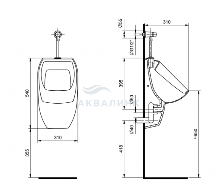керамический писсуар, кран нажимной сифон горизонтальный крепёж для установки писсуара на стену