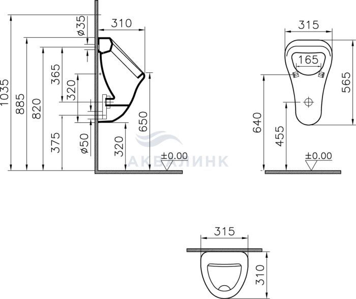 6201B003-0199 Arkitekt писсуар, подвод воды сзади VitrA