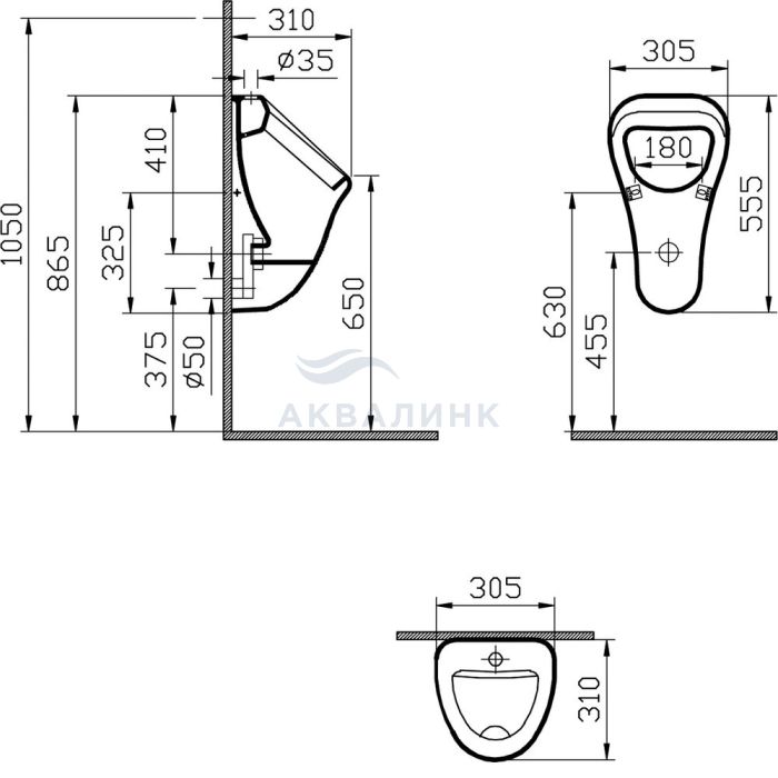 Писсуар Керамин Лаго с нажимным краном и горизонтальным сифоном