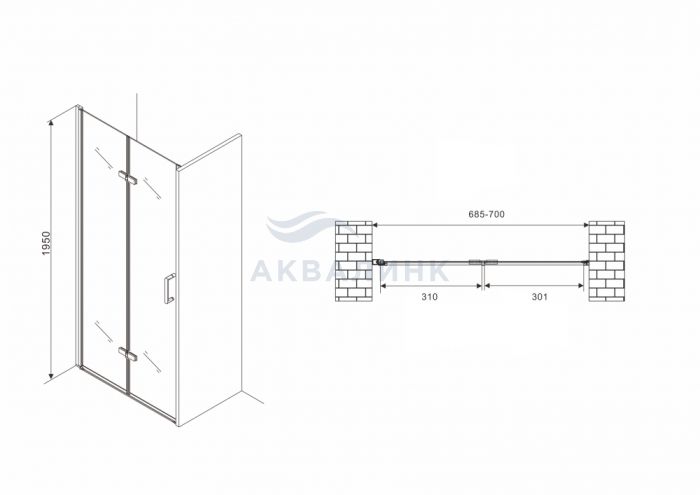 Двери: 2 створки, складная Стекло: закаленое прозрачное 6 мм Профиль: хром Особенности: • металлическая ручка • универсальный монтаж • регулровка ширины: -15/+0 мм • поддон приобретается отдельно