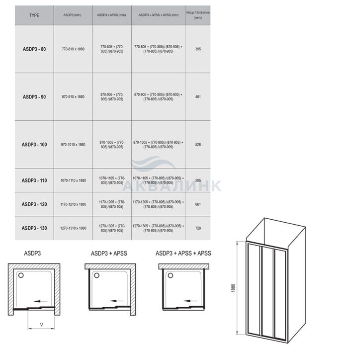 Дверь душевая Ravak Supernova ASDP3-90 черная+тpанспаpент 00V703R2Z1