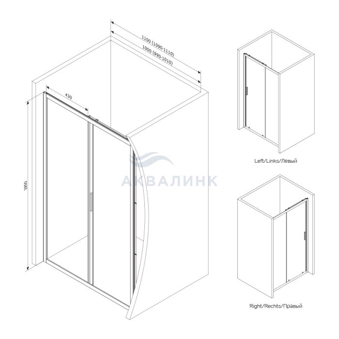 Дверь в нишу Am.Pm Gem Solo W90G-110-1-195MM матовая