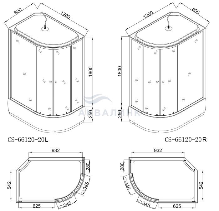 CS-66120-20L/R GB Душевая кабина 120х80х215 в комплекте со средним поддоном 20см.черный кирпичный узор,профиль "черный", серое стекло 4мм. (3 мест)