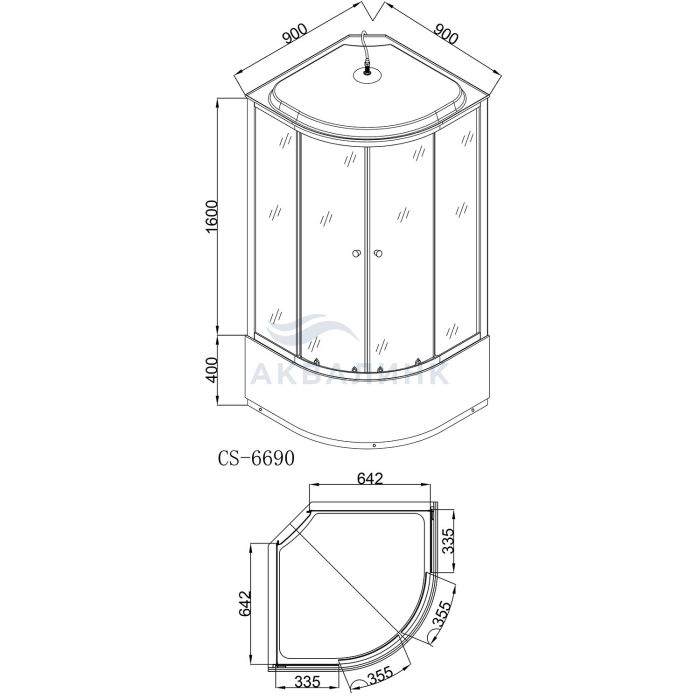 смеситель 2-х режимный¶верхний душ¶ручной душ¶средний поддон¶сифон¶полочка¶крыша