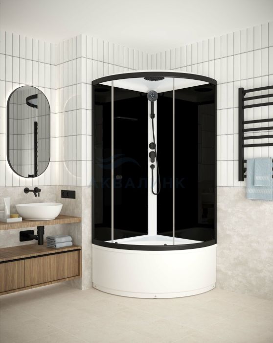 Кабина душевая Melodia Jive Black высокий поддон, черные стенки, прозрачные стекла