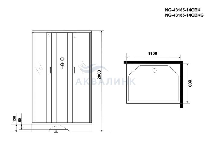 Кабина душевая Niagara NG-43185-14QBK 110х80х200 без крыши, низкий поддон, матовая