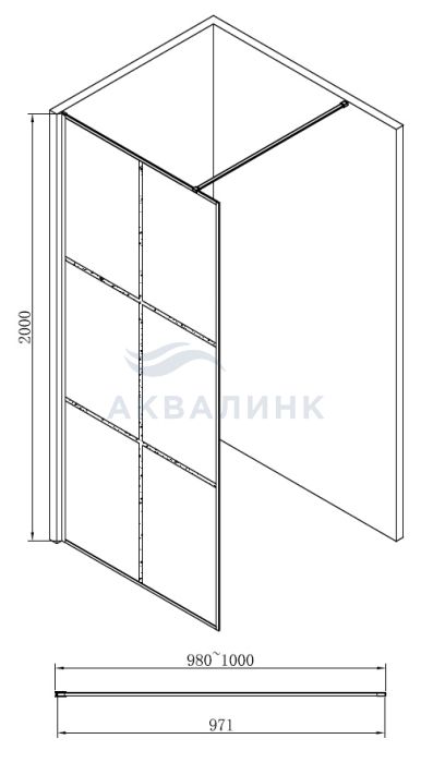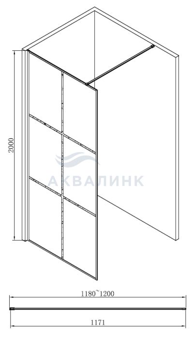 Перегородка душевая Aquatek Walk in AQ.WISL.1GM раздвижная с держателем, профиль оружейная сталь