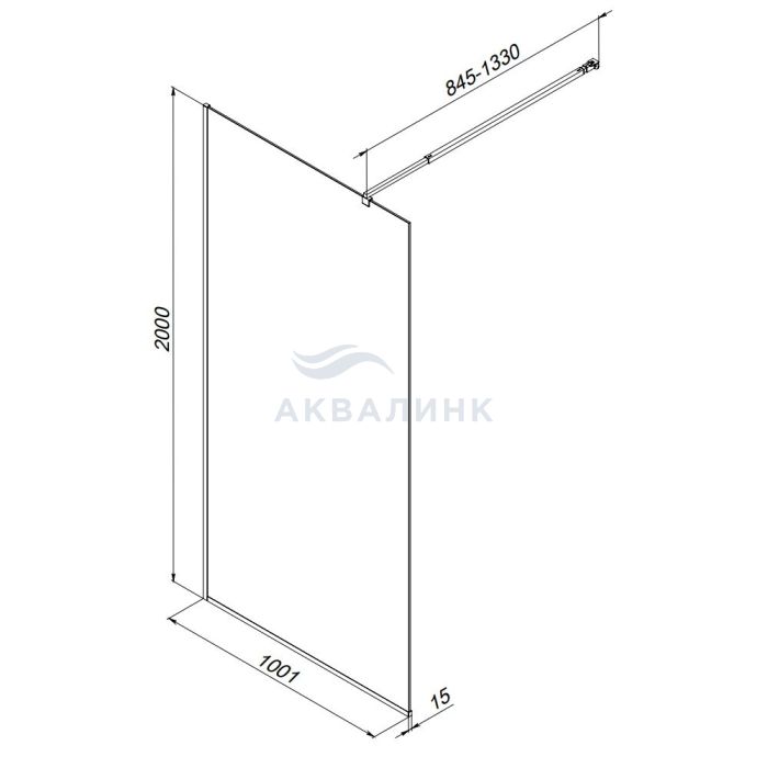 Перегородка душевая Am.Pm Func 100x200 W84WI-100-F1-BTE профиль черный матовый