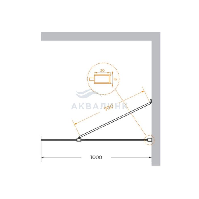 Перегородка душевая Aquatek Walk in AQ.WISL.1GM раздвижная с держателем, профиль оружейная сталь